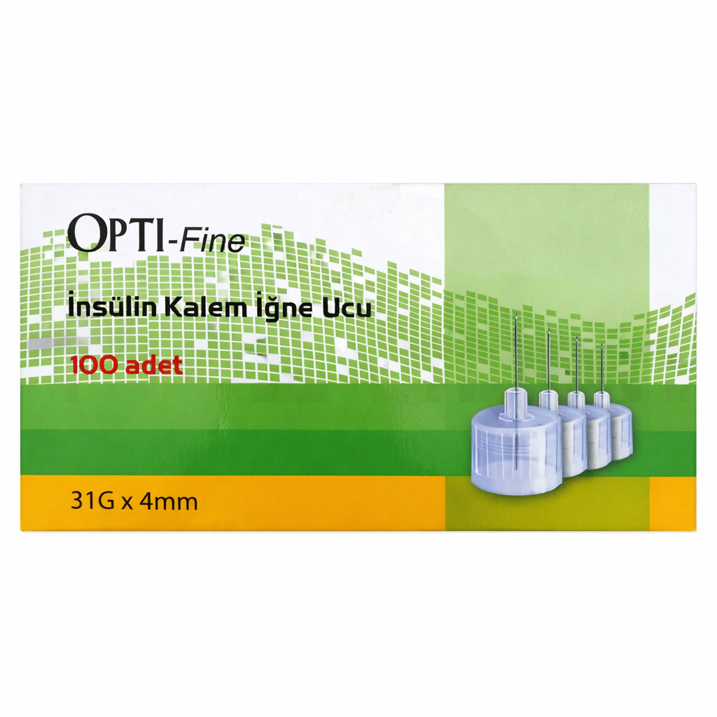 Opti-fine İnsülin Pen Needle (İnsülin Kalemi İğne Ucu) 31G x 4mm. İnsülin kalemi kullanıcıları için tasarlanmış ekstra hassas mikro uç; acıyı minimize eden 31G ultra ince yapı ve kas enjeksiyonu riskini önleyen 4 mm güvenli derinliğiyle her türlü insülin kalemiyle sızdırmaz uyum sağlayan steril, tek kullanımlık profesyonel kalem iğnesi.